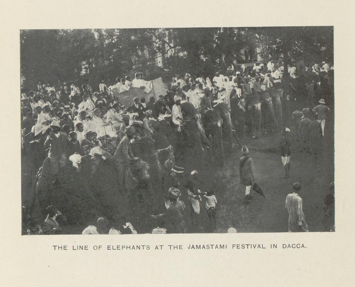 সংস্কৃতিবিষয়ক ছবির মধ্যে রয়েছে ঢাকার জন্মাষ্টমী উৎসব উদযাপনের একটি দুর্লভ চিত্র। ছবিতে দেখা যায়, রাজধানীর সড়কে নেমেছে হাতির শোভাযাত্রা। প্রায় একই সময়ে তোলা (১৯০৪) জার্মান আলোকচিত্রী ফ্রিৎজ ক্যাপের একটি ছবিতেও ঢাকার পিলখানায় হাতির দীর্ঘ শোভাযাত্রার একটি দৃশ্য দেখা যায়। নদীর ১৭টি ছবির মধ্যে তিনটি ছবি লাঙ্গলবন্দ পুণ্যস্নানের।